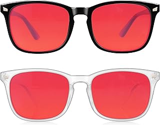 2 Packs Professional Sleep Glasses with 99.9% Blue Light Blocking Dual AR Coatings Red Lens, Computer Gaming Glasses for Men Women, Anti Fatigue & Eye Strain