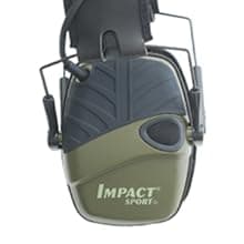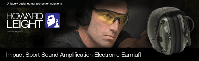 The Howard Leight Impact Sport Electronic Earmuff features a super-slim earcup that makes it ideal for most environments. The cutaway at the bottom of the earcup is specially designed to provide firearm stock clearance while aiming. Two high-gain microphones deliver 4X sound amplification of range commands or forest noises for excellent situational awareness. The mics are also omni-directional to let you know exactly where sounds are coming from. Hearing protection is ensured as the electronic earmuff actively listens and automatically shuts off amplification when loud impulse sounds like gunfire reach 82 dB. It carries a Noise Reduction Rating (NRR) of 22 in both on and off mode. The padded headband features telescopic height adjustment for a comfortable, customized fit. An external audio jack lets you connect the earmuff to a music player, scanner or other audio source. The battery delivers approximately 350 hours of usage, and the automatic shut-off feature engages after four hours to help save battery life. All Howard Leight safety earmuffs and safety eyewear are compatible for use with each other.