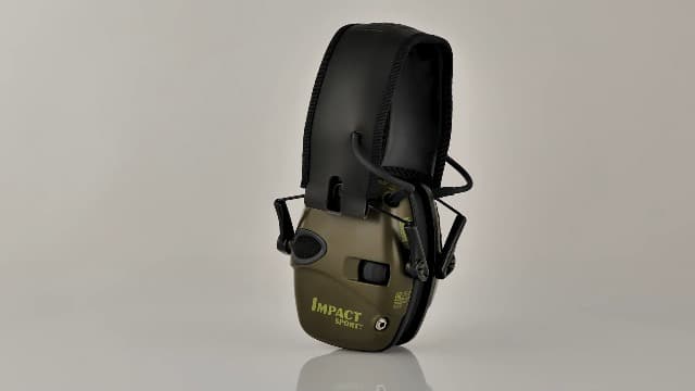 The Howard Leight Impact Sport Electronic Earmuff features a super-slim earcup that makes it ideal for most environments. The cutaway at the bottom of the earcup is specially designed to provide firearm stock clearance while aiming. Two high-gain microphones deliver 4X sound amplification of range commands or forest noises for excellent situational awareness. The mics are also omni-directional to let you know exactly where sounds are coming from. Hearing protection is ensured as the electronic earmuff actively listens and automatically shuts off amplification when loud impulse sounds like gunfire reach 82 dB. It carries a Noise Reduction Rating (NRR) of 22 in both on and off mode. The padded headband features telescopic height adjustment for a comfortable, customized fit. An external audio jack lets you connect the earmuff to a music player, scanner or other audio source. The battery delivers approximately 350 hours of usage, and the automatic shut-off feature engages after four hours to help save battery life. All Howard Leight safety earmuffs and safety eyewear are compatible for use with each other.