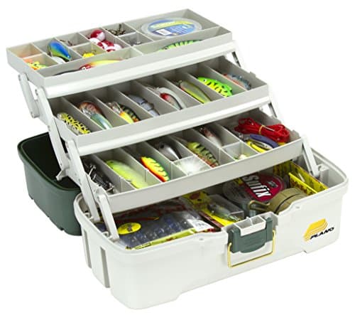 Plano's classic three-tray tackle box features a cantilever tray design that extends open to showcase the contents. A sturdy collapsible handle makes the case easy to carry and store while the brass bailed latch tightly secures the lid, keeping items protected and organized.