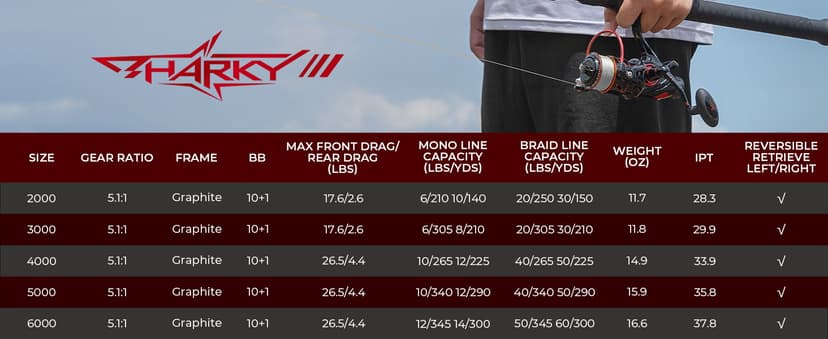 | Fishing Reel Maximum Drag | 39.5 Pounds |