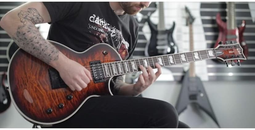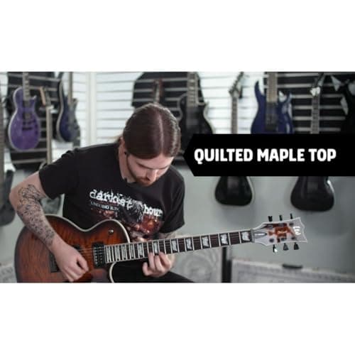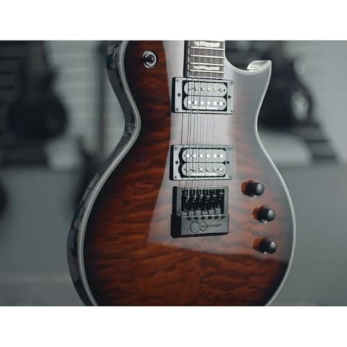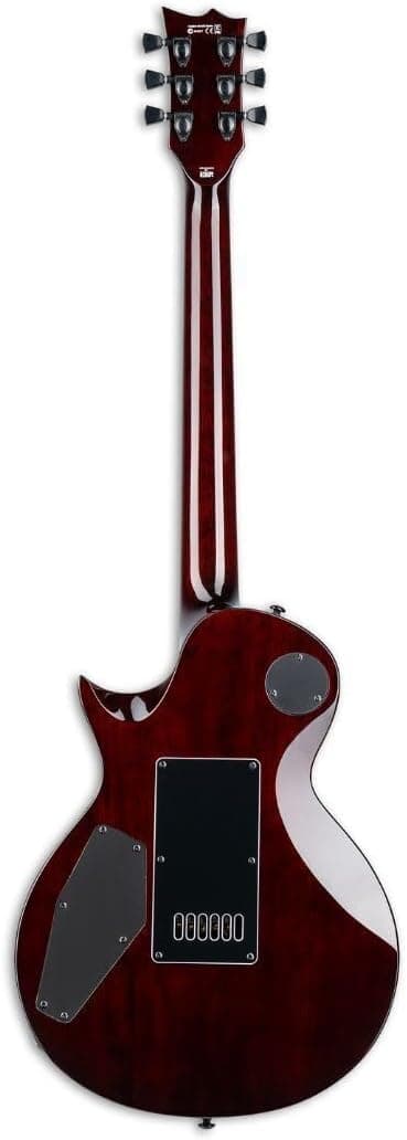 Guitars in the LTD EC-1000 series are designed to offer the tone, feel, looks, and quality that working professional musicians need in an instrument. The EC-1000 EverTune adds a remarkable technology with the EverTune bridge system, which delivers constant tension that keeps your guitar in tune and with near perfect intonation up and down the neck under almost any Condition. Available in several styles including this great-looking quilted maple top with dark brown sunburst finish, it offers set-thru construction with a mahogany body and maple cap, 3 PC. Mahogany neck, and 24-fret Macassar ebony fingerboard, multi-ply body/neck/headstock binding, and the excellent tone from Seymour Duncan Jb/jazz passive pickups.