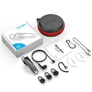 ♥ Fit snugly with supreme comfort ① In-ear SILICONE design with 360 degree adjustable EAR HOOKS to keep the earpiece in place. No falling worry even you heads down. ② Extra three EAR TIPS ensure comfortable wearing. ③ 0.4 ounces / 12g light body, no heavy feeling. ★★★★Safe keeper for driving call and music listening when run.★★★★ ♥ Clear sound✔, No surrounding noise× ①State of the art NOISE CANCELLING TECH, clear Microphone delivers clear voice to the other side. ② Devotion makes profession. New Bee professional headset bring you HD calling experience ★★★ Clear call for both sides makes it perfect cell phone headset ★★★ ♥ Long Battery Life ① 60 days/1440 hrs STANDBY ② 24 hrs TALK TIME ③ 22 hrs MUSIC PLAY ★★★★★★★★★ Always stand by when you need it ★★★★★★★★★ ♥ Stable CSR CHIP Bluetooth Connection & Wide Compatibility for iPhone IOS, Samsung Android. ① Fast and stable connection. ② Auto connection after first-time connection. ★★★★★★★★★ No interruption by disconnecting ★★★★★★★★★ ♥ Two Device Connection & 15m Long Range ① You can connect 2 devices at the same time and hear sound from both. ② 15m long distance enhances hands free feature. ★★★★★★ Connect your phone and GPS at the same time ★★★★★★ ♥ Carrying Case for to go ♥ Phone Virtual Assistant Wake-up by One Click ✔ Get It Today✔ 1xBluetooth Headset 1xUSB cable 1xExtra wired earphone 1xCarrying case 3xEarphone buds 2xEarphone hook 1xUser Manual