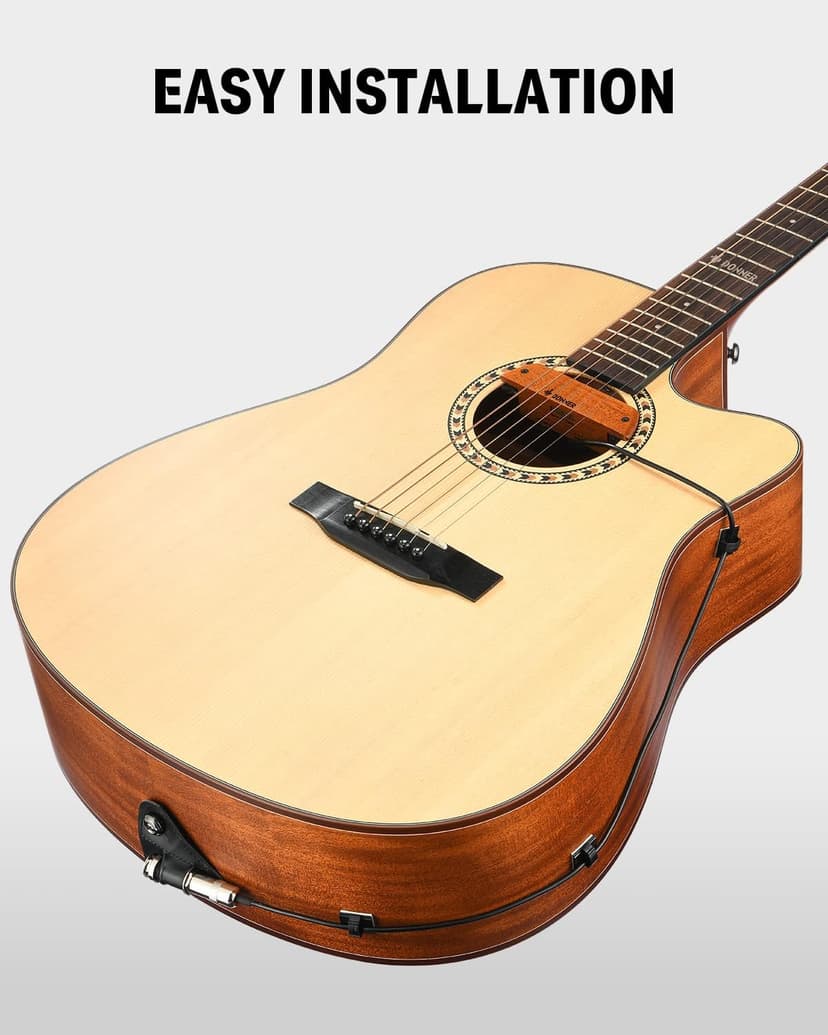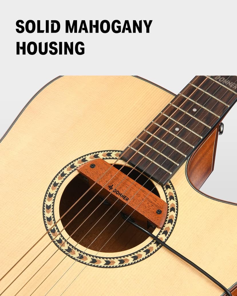 Specification: Pickup Theory: Cutting Magnetic Lines Pickup Type: Humbucking Passive Housing: SOLID Mahogany Housing Connection Method: 64cm instrument cable with 3.5mm and 6.35mm jacks Fit Minimum Soundhole Diameter: 3.8” (96.6 mm)