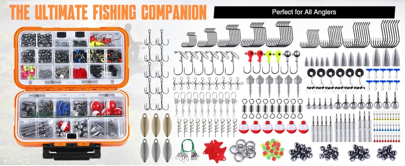 TOPFORT 187/343pcs Fishing Accessories Kit, Organized Fishing Tackle Box with Tackle Included, Fishing Hooks, Fishing Weights Sinkers, Fishing Gear and Equipment, Fishing Gift for Men