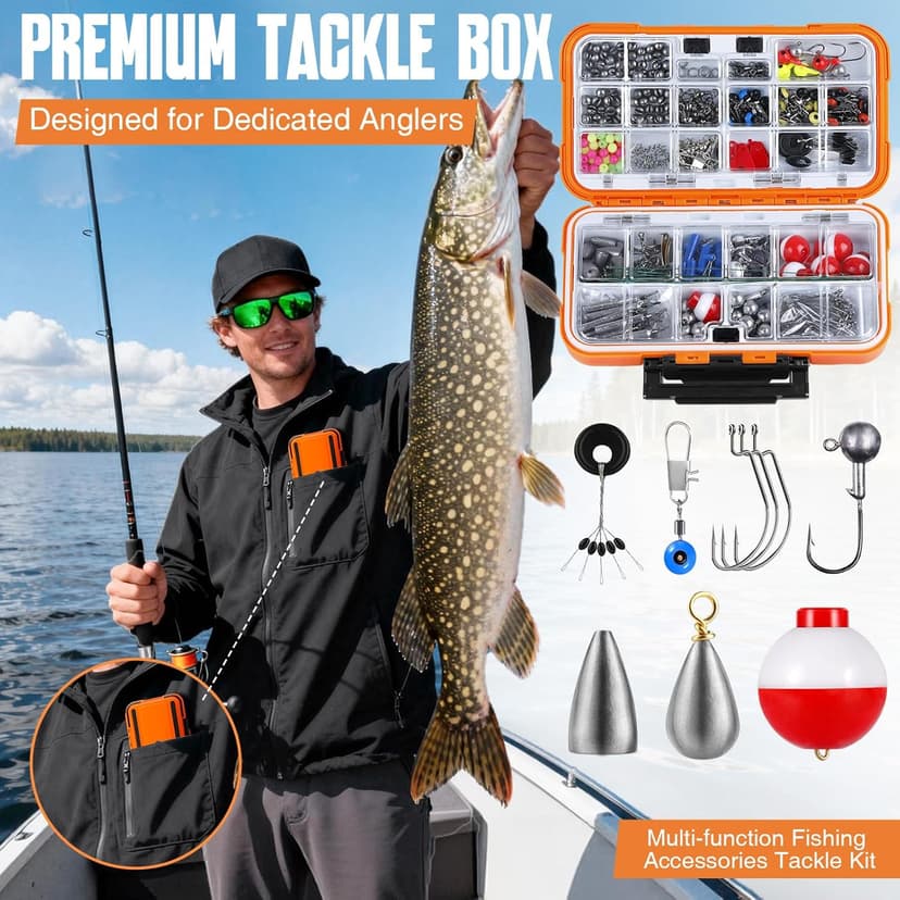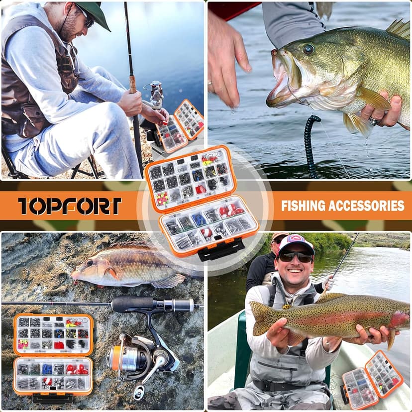 TOPFORT 187/343pcs Fishing Accessories Kit, Organized Fishing Tackle Box with Tackle Included, Fishing Hooks, Fishing Weights Sinkers, Fishing Gear and Equipment, Fishing Gift for Men