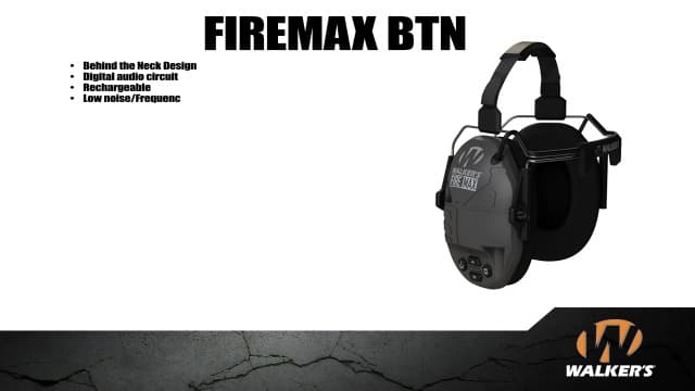WALKER’S FireMax Muffs Protect your ears while at range or racetrack with Walker's FireMax Electronic Muffs. Featuring low-profile design with comfortable cooling gel ear pads and rubber Tacti-Grip headband, these earmuffs ensure maximum protection, without weighing you down or interfering with butt of gun. Digital audio circuits deliver superior clarity and balanced sound with full dynamic range HD speakers. 2 omni-directional microphones enhance ambient sounds for improved awareness of your surroundings, while sound-activated compression blocks out harmful sounds for impressive 23dB Noise Reduction Rating (NRR). Digital soft-touch buttons make for easy volume and activation control, and 3.5mm audio jack readily accepts variety of audio input devices, such as radio comms and MP3 players for enhanced convenience. Operating on internal rechargeable 2000mAH battery, these digital earmuffs boast lasting 200-hour battery life with 4 frequency modes for optimal performance in field. Includes USB-C charger. SPECIFICATIONS: - Low-profile design; - Tacti-Grip headband; - Comfortable cooling gel earpads; - Digital audio circuits; - Omni-directional microphones; - Full dynamic range HD speakers; - 4 frequency modes; - Audio input jack; - Compact folding design; - Digital soft-touch control buttons; - Sound dampening composite housing; - 23dB NRR; - Sound-activated compression; - Internal rechargeable 2000mAH battery