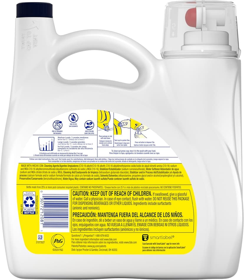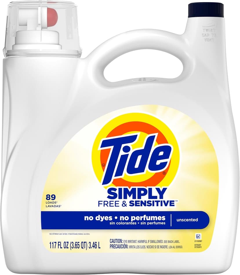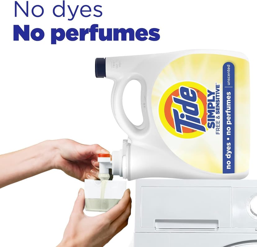 Experience the gentle power of Tide Simply Liquid Laundry Detergent, Free & Sensitive. This Tide Simply laundry detergent is specifically formulated to be kind on your skin, making it an ideal choice for those with sensitivities. Unlike other detergents, this Tide laundry detergent is free from dyes and perfumes, ensuring a clean and fresh wash without any unnecessary additives. Notably effective in cold water, this Tide liquid laundry detergent delivers excellent results while saving energy - a win-win for you and the environment. As a versatile washing detergent choice, it's compatible with both HE and standard washing machines. This exceptional laundry soap provides a thorough clean that leaves your clothes smelling fresh and feeling soft. Upgrade your laundry routine with this high-quality laundry detergent liquid today.