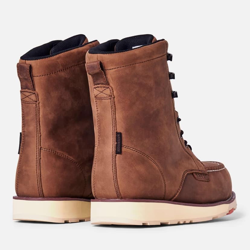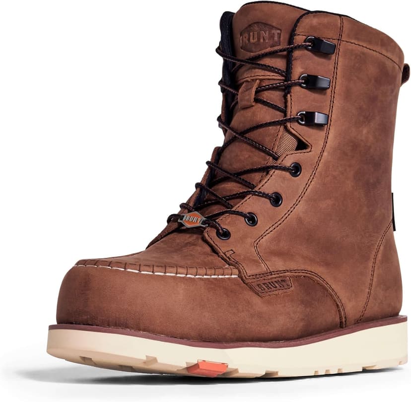 Ideal for tradespeople, the Marin 8" Soft Toe excels from greasy workshop floors to muddy farmlands. Our top-seller boasts an 8" height for enhanced ankle support and safeguards against sparks, mud, and moisture. Equipped with a breathable, waterproof membrane and leather, it keeps feet dry. The BRUNT rubber outsole resists oil, slips, and high heat up to 572F/300C, featuring electrical hazard protection. Additionally, it sports waterproof, barnyard-resistant FARMGUARD leather, shielding against rain, mud, oil, and more. All BRUNT leather hails from USA Texas steer, ensuring premium quality.