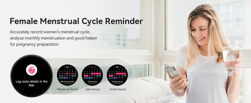 | Special Feature | 24/7 Activity Tracker, Heart Rate Monitor, Sleep Monitor, Alexa Bulit-in Voice Control, Message Notifications, Answer/Make Call, Long Battery Life, AMOLED Touchscreen, Cycle Tracking, Alarm Clock, Blood Oxygen Monitor, 110+ Sport Mode, 3ATM Waterproof, Music Control, Distance Record/Pedometer/Calories, Distance Tracker See more |