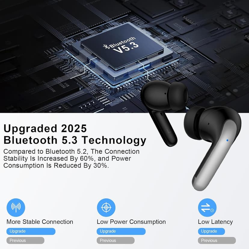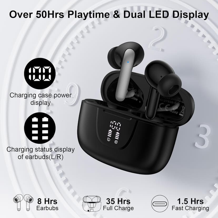 Wireless Bluetooth 5.3 Headphones Built in Mic Deep Bass Sound Over-Ear Earbuds for iPhone Android Samsung Sport Running Workout Gaming Bluetooth 5.3 technology for wide Use in multiple scenarios & Compatible with most Bluetooth-enabled device. ·Adopting advanced Bluetooth 5.3 technology, these workout earphones are widely compatible with most devices, like IOS system devices, Android system devices and most devices with bluetooth.Such as for Samsung Galaxy S25 Ultra/S24/S23/S22/S21/S20/S10 Plus/Google 9 Pro xl/8a/7a/8/7/6 Pro/Sony/LG and more)and iPhone product(including iPhone 17/16e/16/15/14/13/12/11/X/8/7 series, iPad, Mac Book etc.), and smart TV/computer/Laptop and so on. Wireless Earbuds with Mic, Made for Exercise, Combine LED Digital Display to Bring You a Day of Quality Music Enjoyment. 1.Our bluetooth earbuds equipped with 3 different size ear tips to meet different customer ear canal, choose one which is suit you and attach to the earbuds. 2.Lightweight and comfortable to wear, perfect for jogging or biking, driving, bending, running, jumping, farming etc. 3.Bluetooth earphones support USB C charging,and the 60 hrs total playtime allows you to enjoy a full day of music. 4.Wireless buletooth earphones provides HD, strong stereo sound quality, let you have your own little music world, make you fall in love with music. Package Content: Wireless Charging Case Wireless Earbud*2 (L&R) S/M/L Eartips User Manual