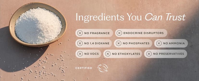 | Material Type Free | 1,4-Dioxane Free, Fragrance Free, Optical Brightener Free, Phthalate Free, VOC Free |