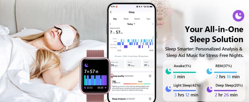 | Special Feature | Alexa Built-in, Make/ Answer Calls, Heart Rate/Stress/ Sleep Monitoring |