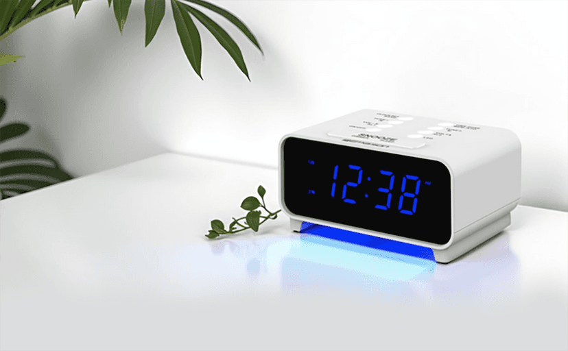 Start every morning on time and in style with the Emerson CKS1500 SmartSet Dual Alarm Clock Radio, designed for simplicity, accuracy, and a modern aesthetic. Featuring Emerson’s patented SmartSet technology, this clock automatically sets the year, month, date, day, and time the moment you plug it in—and re-adjusts after any power loss. It even automatically adjusts for Daylight Saving Time. The 0.9” blue LED display is crisp and easy to read, while the 4-level dimmer lets you customize brightness to your comfort. Set dual alarms to wake to either a buzzer or your favorite AM/FM station, with up to 20 station memory presets for instant tuning. A programmable sleep timer, repeat snooze, and digital volume control add functionality and convenience. Beyond the numbers, the CKS1500 features two levels of blue LED accent lighting, giving your nightstand a warm, ambient glow. The unit’s compact footprint (4.73” W x 3.15” D x 2.36” H) and integrated AM/FM antennas make it a perfect fit for bedrooms, dorms, and offices alike. With a non-detachable AC power supply and an included button cell backup battery, this Emerson clock is always ready—just plug in and go.