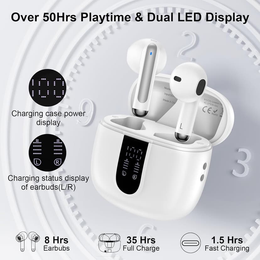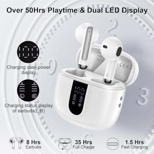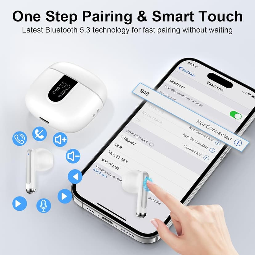 Bluetooth 5.3 Headphones Built in Mic Deep Bass Sound Wireless Earbuds for Samsung Sport Running Workout Gaming Bluetooth 5.3 technology for wide Use in multiple scenarios & Compatible with most Bluetooth-enabled device.Adopting advanced Bluetooth 5.3 technology, these workout earphones are widely compatible with most devices, like IOS system devices, Android system devices and most devices with bluetooth.Such as for Samsung Galaxy S25 Ultra/S24/S23/S22/S21/S20/S10 Plus/Google 9a/9 Pro xl/8a/7a/8/7/6 Pro/Sony/LG and more)and iPhone product(including iPhone 16e/16/15/14/13/12/11/X/8/7 series, iPad, Mac Book etc.), and smart TV/computer/Laptop and so on. Wireless Earbuds with Mic, Made for Exercise, Combine LED Digital Display to Bring You a Day of Quality Music Enjoyment. 1.These earbuds offer ultra-fast pairing, stable connections up to 33 feet, and zero latency for seamless audio. 2.Lightweight and comfortable to wear, perfect for jogging or biking, driving, bending, running, jumping, farming etc. 3.Bluetooth earphones support USB C charging,and the 60 hrs total playtime allows you to enjoy a full day of music. 4.Wireless buletooth earphones provides HD, strong stereo sound quality, let you have your own little music world, make you fall in love with music. Package Content: Wireless Charging Case Wireless Earbud*2 (L&R) User Manual