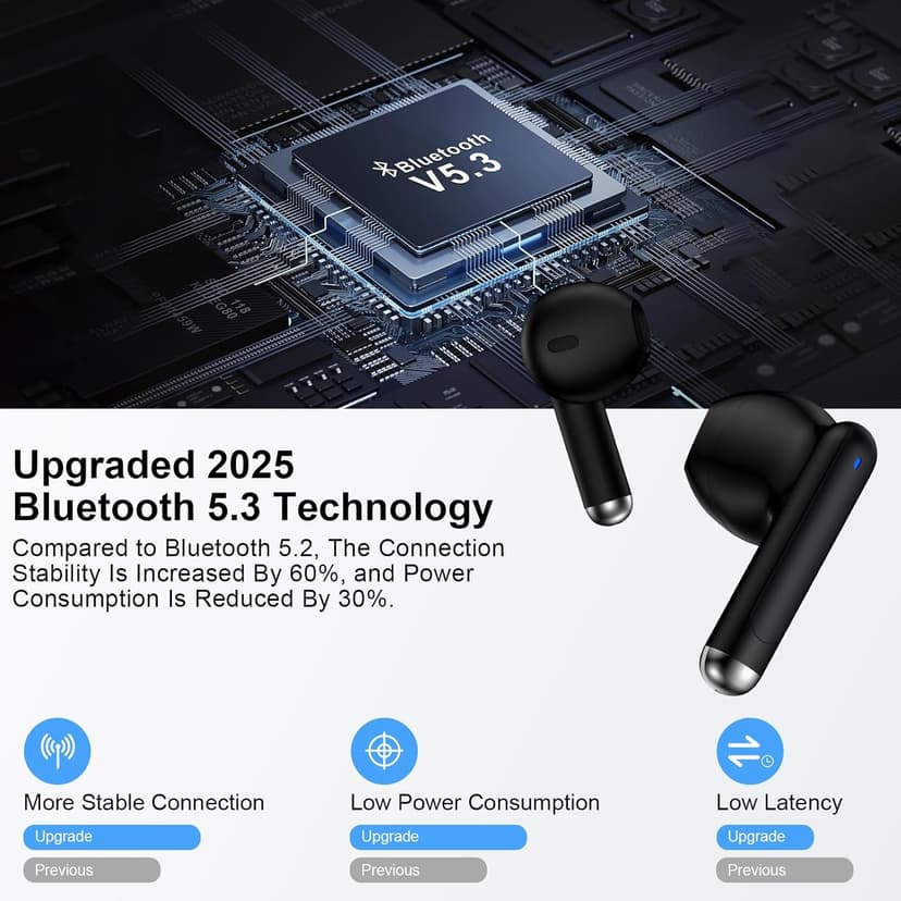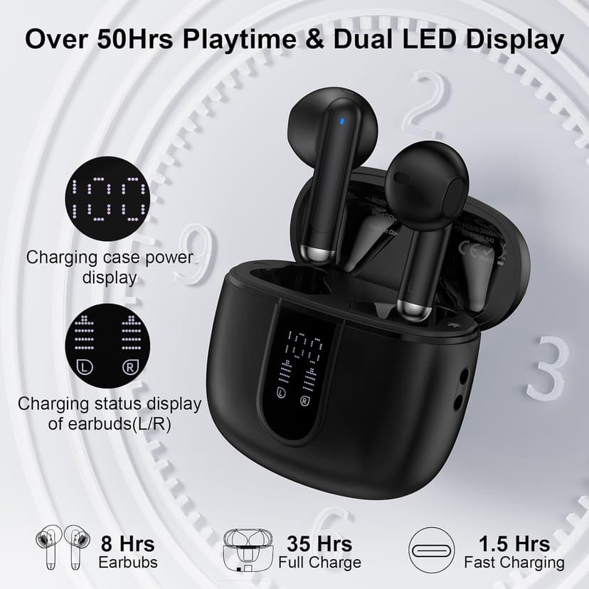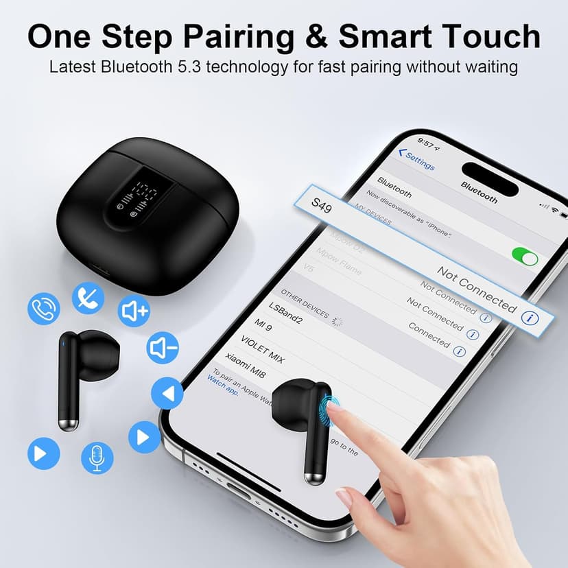 Bluetooth 5.3 Headphones Built in Mic Deep Bass Sound Wireless Earbuds for Samsung Sport Running Workout Gaming Bluetooth 5.3 technology for wide Use in multiple scenarios & Compatible with most Bluetooth-enabled device.Adopting advanced Bluetooth 5.3 technology, these workout earphones are widely compatible with most devices, like IOS system devices, Android system devices and most devices with bluetooth.Such as for Samsung Galaxy S25 Ultra/S24/S23/S22/S21/S20/S10 Plus/Google Pixel 10 Pro XL/9a/9 Pro xl/8a/7a/8/7/6 Pro/Sony/LG and more)and iPhone product(including iPhone 17/16e/16/15/14/13/12/11/X/8/7 series, iPad, Mac Book etc.), and smart TV/computer/Laptop and so on. Wireless Earbuds with Mic, Made for Exercise, Combine LED Digital Display to Bring You a Day of Quality Music Enjoyment. 1.These earbuds offer ultra-fast pairing, stable connections up to 33 feet, and zero latency for seamless audio. 2.Lightweight and comfortable to wear, perfect for jogging or biking, driving, bending, running, jumping, farming etc. 3.Bluetooth earphones support USB C charging,and the 60 hrs total playtime allows you to enjoy a full day of music. 4.Wireless buletooth earphones provides HD, strong stereo sound quality, let you have your own little music world, make you fall in love with music. Package Content: Wireless Charging Case Wireless Earbud*2 (L&R) User Manual
