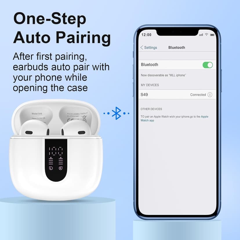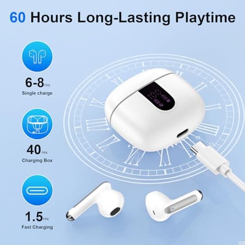 ★Specifications★ Standby time: >60 hours Working time: >8 hours + charging compartment can charge the earphones 2-3 times Charging time: <2 hour Communication distance: barrier-free 10-15m Battery capacity: 50 amp Bluetooth technology: Bluetooth V5.3 Charging case battery capacity: 300 amp ✅60hrs Playback & LED Digital Display ✅Wireless earbuds with buttons for volume and changing tracks, instead of one touch pad for every function. Buttons are easy to use while running. The charging case tells you what percentage each headphone is at. ✅IPX7 Sweat-resistant ✅Bluetooth headphones creates a sweatproof seal to protect the internal components against damage. Sports-friendly over-the-ear headphones keep stay in your ear while you running. ✅One Step Auto Paring ✅Bluetooth earbuds features a magnetic Hall-effect switch, just open the charging box, the headset will automatically turn on and connect to phone after initially connected. ✅Bluetooth 5.3 Technology ✅Bluetooth 5.3 has greatly improved the transmission signal. It provides faster, more stable wireless connections and lossless, low-latency high-quality sound, and offers extended range with virtually no loss. ★Wide Compatibility★ Samsung Galaxy S25 Edge S25 Ultra S25 S25+ S24 FE,S24 Ultra,S24 Plus,S24,S23 FE S23 S23+ S23 Ultra Samsung Galaxy Z Fold 7 6 4 3, Z Flip 7 FE,7 6 5 4 3,A56 A36 A26 A16 5G A06 5G A15 A14 A54 A55 A35 A25 A13 A23 A34 A24 A53 A03s A04s A33 A32 Samsung Galaxy S22 S22+ S22 Ultra, S21 S21+ S21 FE,S21 Ultra, S20 S20 FE S20+ S20 Ultra, Note 20 10 iPhone 16e / 16 / 16 Pro/ 16 Pro Max/ 16 Plus, iPhone 15 / 15 Pro/ 15 Pro Max/ 15 Plus iPhone 14, 13, 12, 11, XS, XS Max, X, XR, SE, 8 / 8 Plus, 7 / 7 Plus, 6 / 6 Plus, 5 / 5S / 5C iPad Pro 12.9" Gen1/Gen2/Gen3, iPad Pro 11", 10.5",iPad 10.9" 10th Gen 2022, iPad Mini 5th/ 4th/ 3rd/ 2nd, iPad Air 4th/ 3rd/ 2 Google Pixel 9a,9 Pro XL,9 Pro Fold,9 Pro,9,8a, 8 Pro, 8, 7a, 7 Pro, 7, 6, 6 Pro, 6, 5, 4 XL, 4, 3 XL, 3 LG G9 ThinQ G8 G8X G8S G7 G6 G5, Stylo 6/5/4, V60 V50 V40 V35 V30S V20 Q9 Q8 Q7+ LG, One Plus, and more.