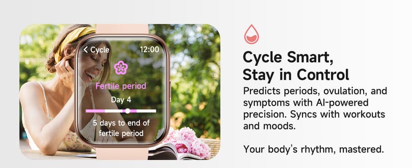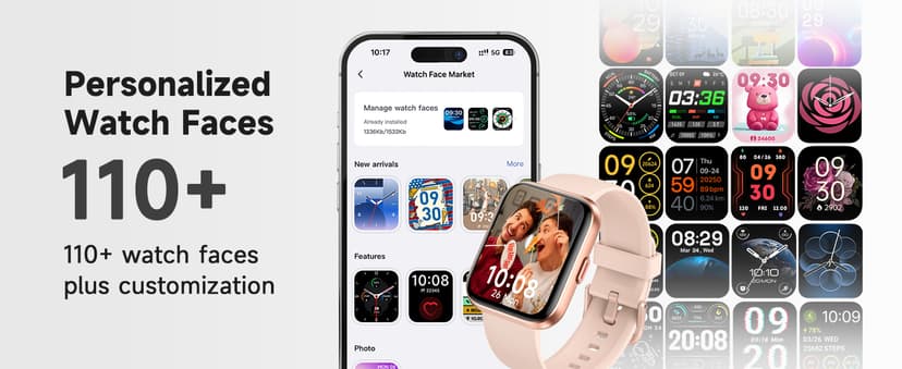| Special Feature | 24/7 Activity Tracker, Heart Rate Monitor, Sleep Monitor, Alexa Bulit-in Voice Control, Message Notifications, Answer/Make Call, Long Battery Life, AMOLED Touchscreen, Cycle Tracking, Alarm Clock, Blood Oxygen Monitor, 110+ Sport Mode, 3ATM Waterproof, Music Control, Distance Record/Pedometer/Calories, Distance Tracker See more |