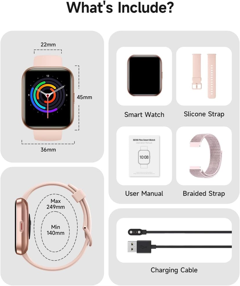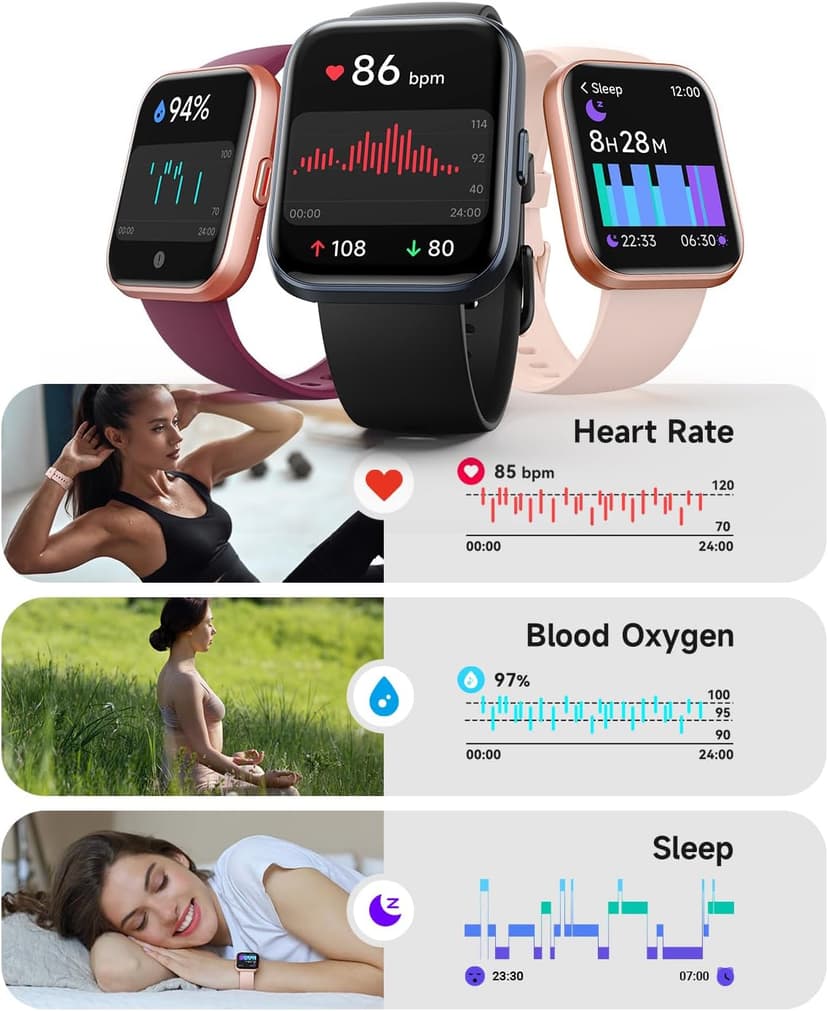 | Special Feature | 24/7 Activity Tracker, Heart Rate Monitor, Sleep Monitor, Alexa Bulit-in Voice Control, Message Notifications, Answer/Make Call, Long Battery Life, AMOLED Touchscreen, Cycle Tracking, Alarm Clock, Blood Oxygen Monitor, 110+ Sport Mode, 3ATM Waterproof, Music Control, Distance Record/Pedometer/Calories, Distance Tracker See more |