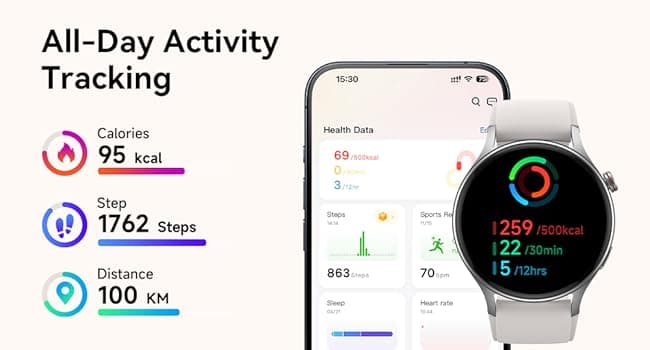 | Special Feature | 24/7 Activity Tracker, Heart Rate Monitor, Sleep Monitor, Alexa Bulit-in Voice Control, Message Notifications, Answer/Make Call, Long Battery Life, AMOLED Touchscreen, Cycle Tracking, Alarm Clock, Blood Oxygen Monitor, 110+ Sport Mode, 3ATM Waterproof, Music Control, Distance Record/Pedometer/Calories, Distance Tracker See more |