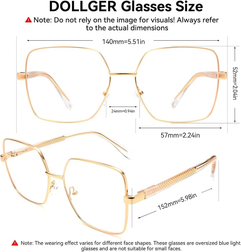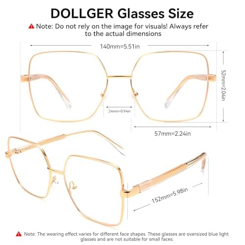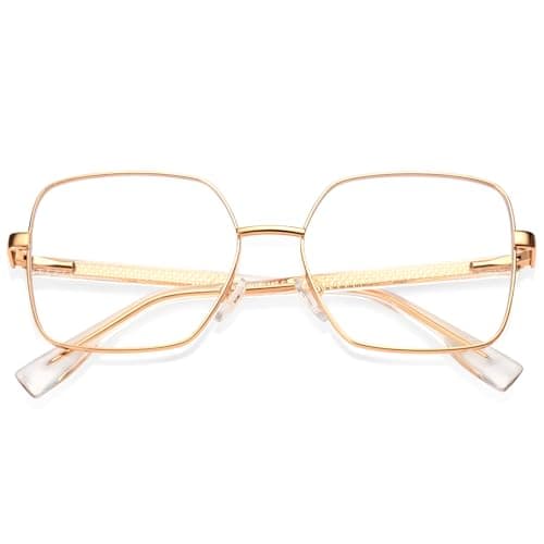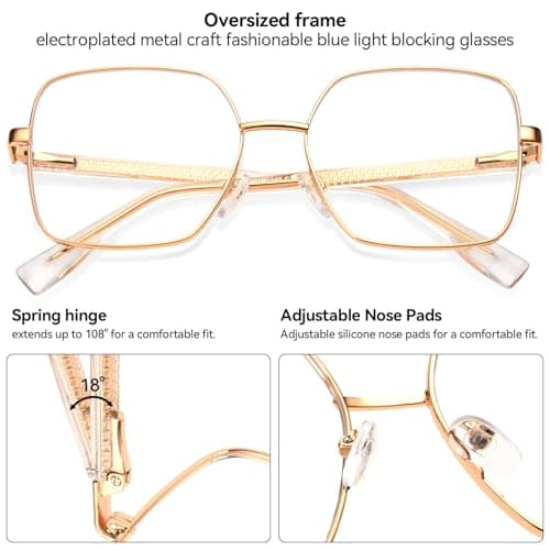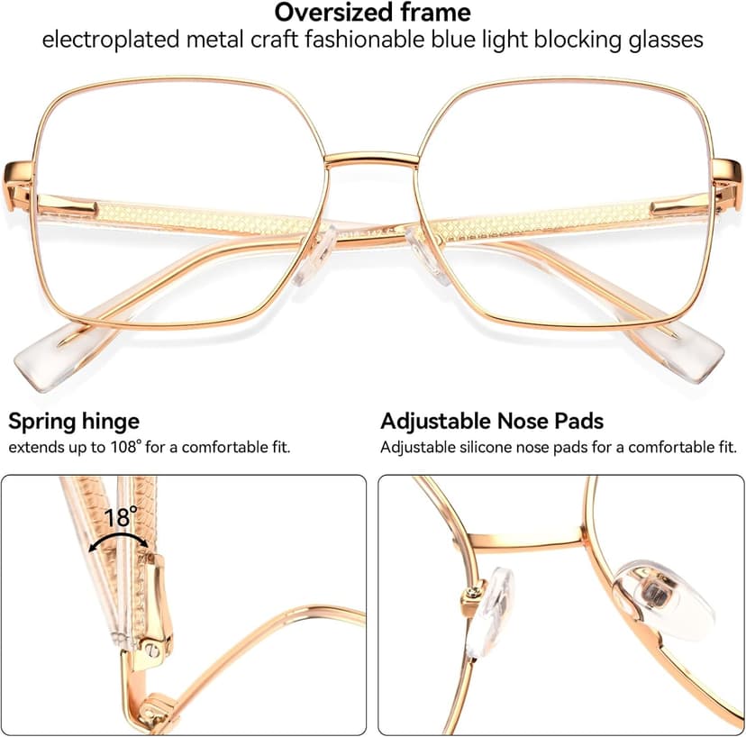 Oversized Square Blue Light Blocking Glasses for Women Men Trendy Big Large Metal Frame Cute Anti Bluelight Blocker Glasses for Computer Screen Use,The advanced anti-blue light lenses effectively filter out harmful blue light from digital screens, reducing issues such as dry eyes, blurry vision, and sleep disruption. These are non-prescription blue light glasses, but the lenses are removable and replaceable, making them suitable as fashion eyeglass frames or prescription eyeglasses frames.