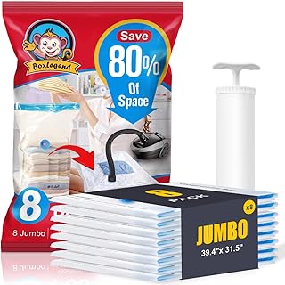 BoxLegend Vacuum Storage Bags with Large Size Hand Pump 8 Jumbo 31.5’’x39.37’' Thickened Vacuum Seal Bags for Clothing Space Saving Vacuum Pack Storage Bags for Pillow Comforters Bedding