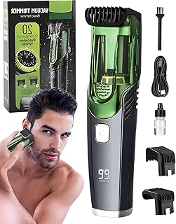 Built-in Vacuum Trimmer for Mustache, Sideburns, Facial Hair, Vacuum Beard Trimmer for Men, Beard Trimmer With Vacuum with Two Hair Combs, IPX6 Waterproof, Perfect Gifts for Husband or Boyfriend