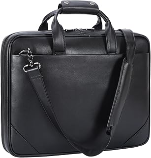 Masa Kawa Leather Slim Briefcase for Men 16” Laptop Shoulder Messenger Computer Bag Business Travel Work Attache Case